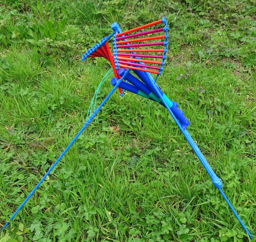 Perceptual Loops. These spatial drawings are my current work. Perceptual Loops Arcs. The arcs may stand up, hang down or run across the ground. Inventions. These constructions play colours and forms against one another, like counterpoint. Nannorrhops. The name refers to a small bush of unspecified size and shape. These constructions often bear some loose resemblance to plants in their surroundings, enough to make a viewer aware of a very sharp contrast. Poles. The poles are taller than viewers, and move in response to air currents. There are a few single poles, but more usually they are in groups of three or more. Folds. Folds lie on the ground, at a 90o angle from the way most of us look at, say, plants…